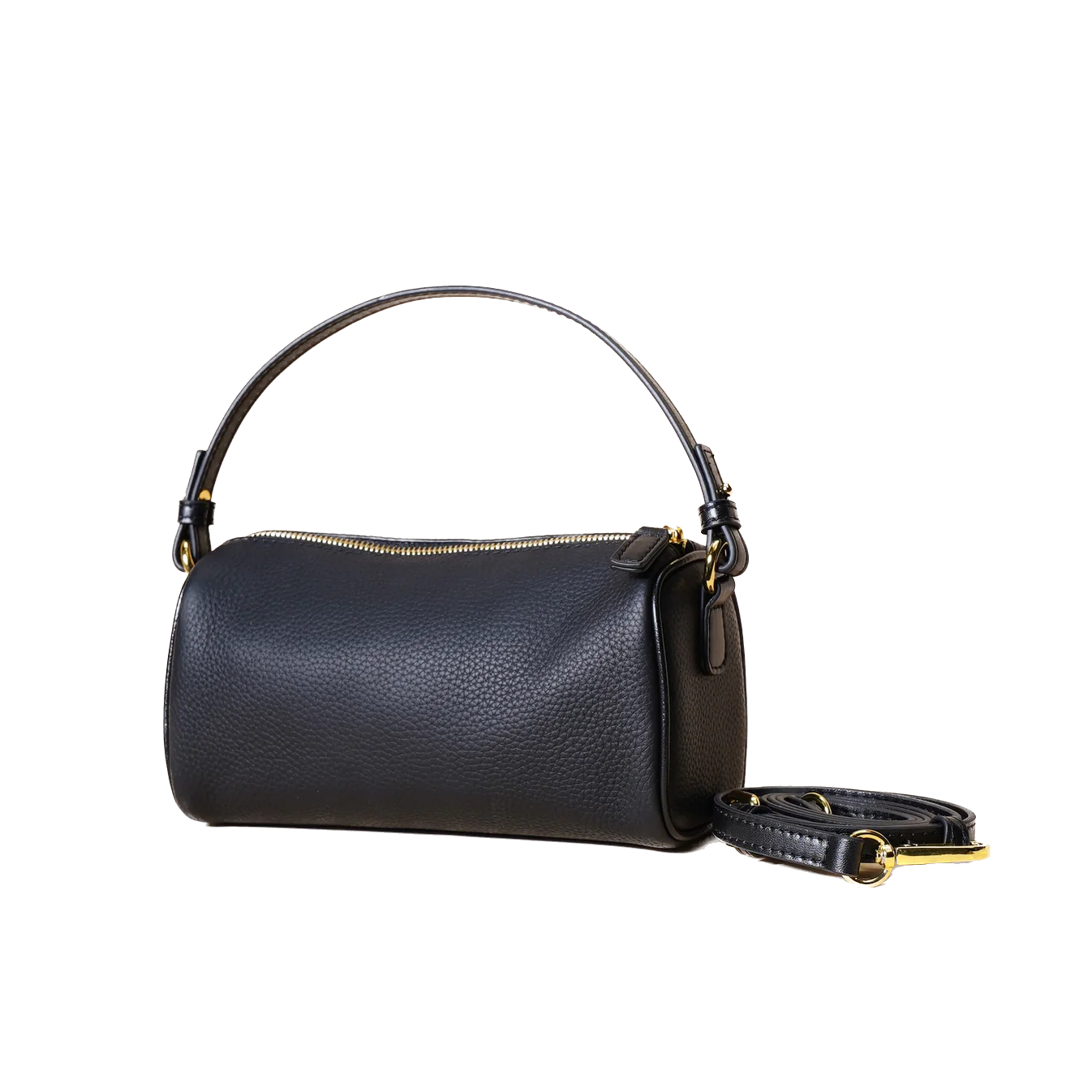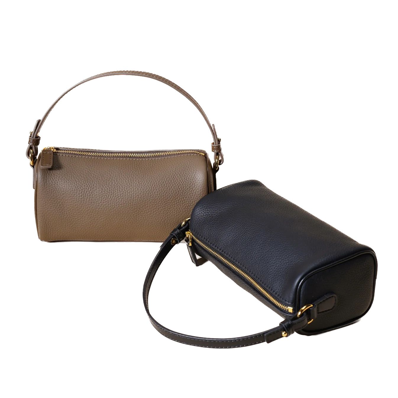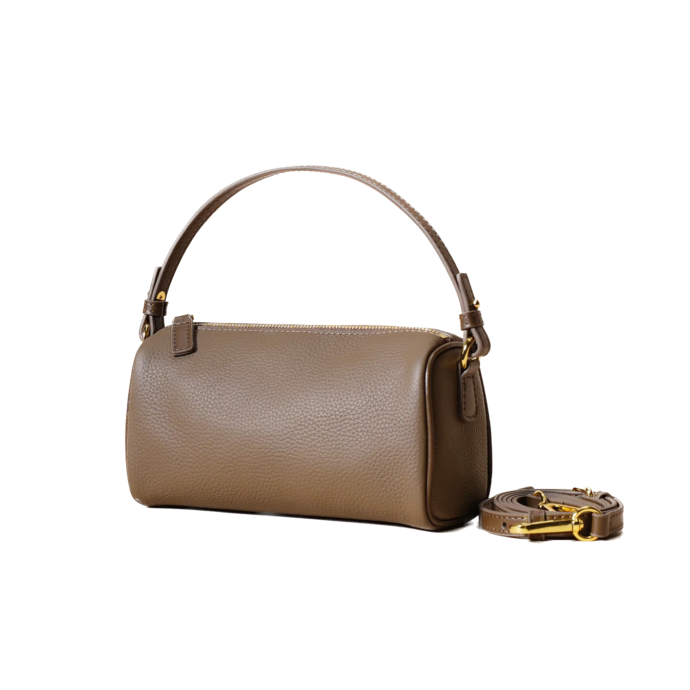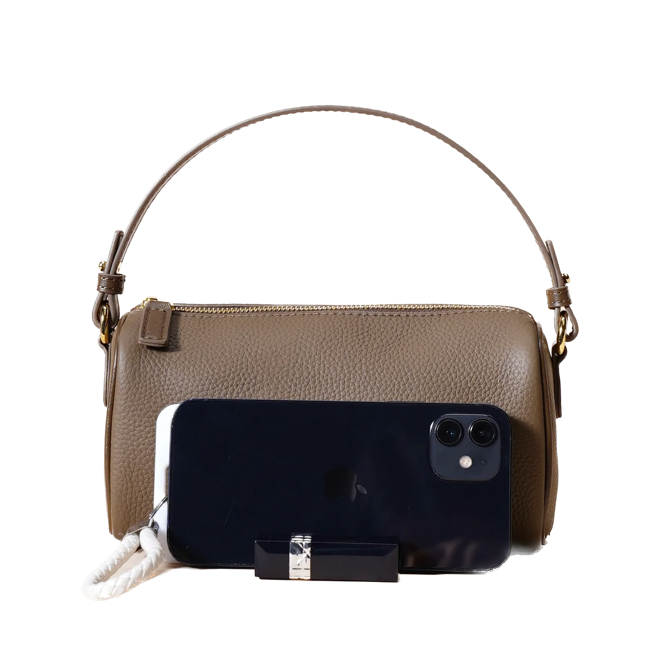 Premium birinci sınıf sığır derisinden üretilmiş, küçük boy silindirik formuyla sofistike bir görünüm sunar.