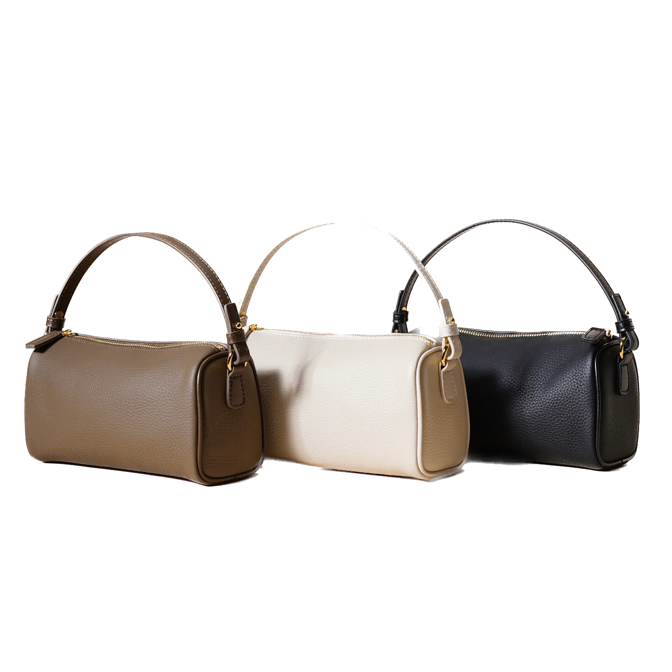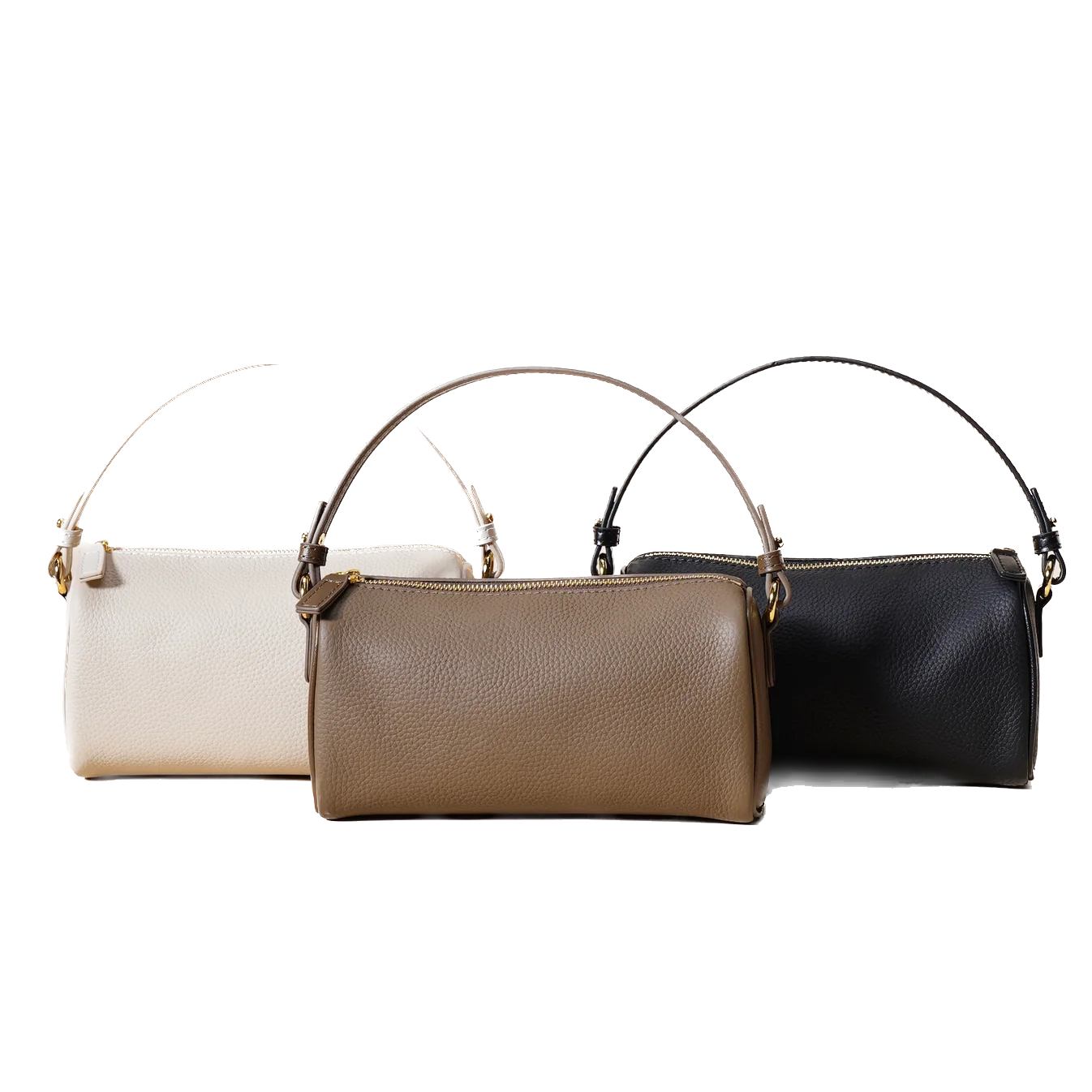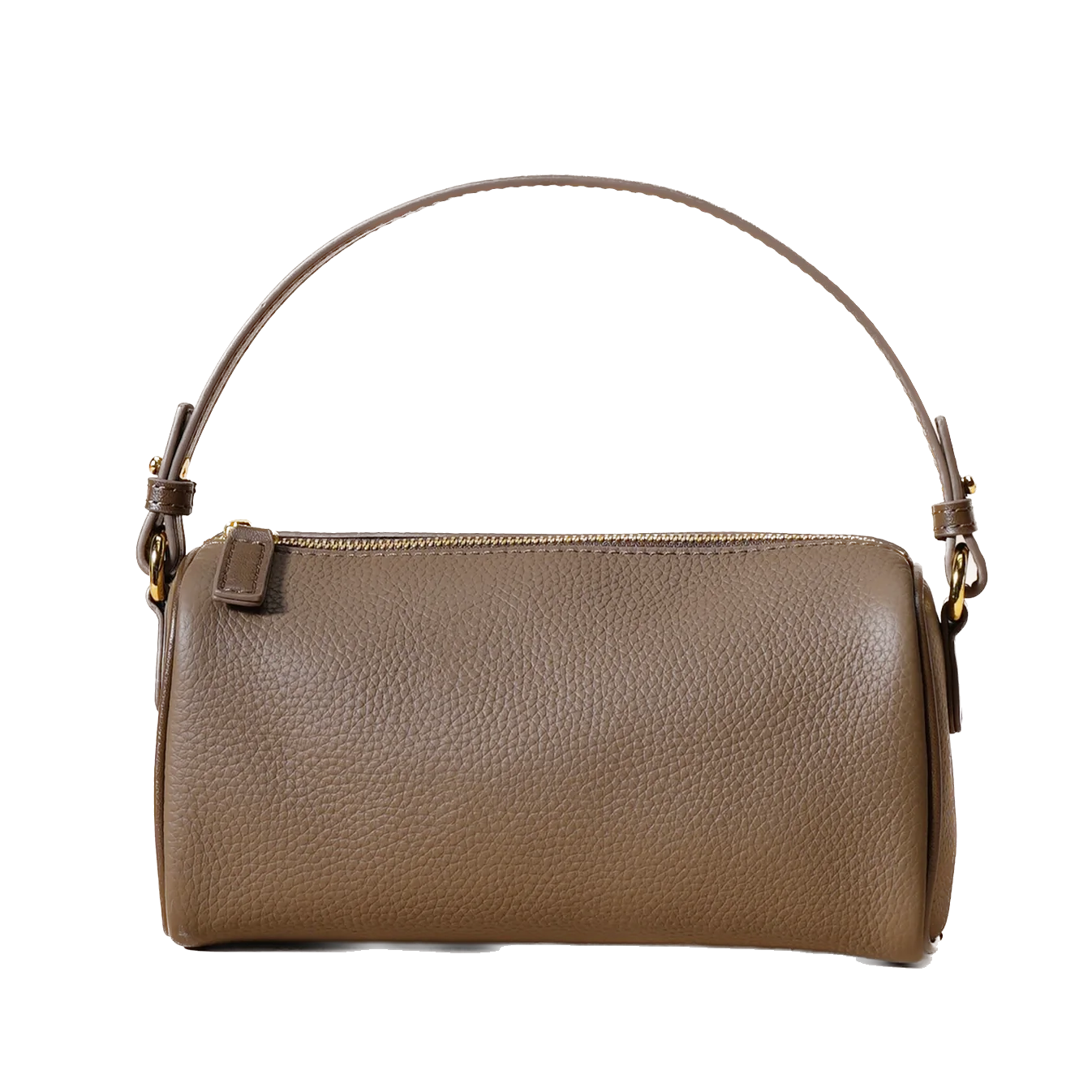 Premium birinci sınıf sığır derisinden üretilmiş, küçük boy silindirik formuyla sofistike bir görünüm sunar.
