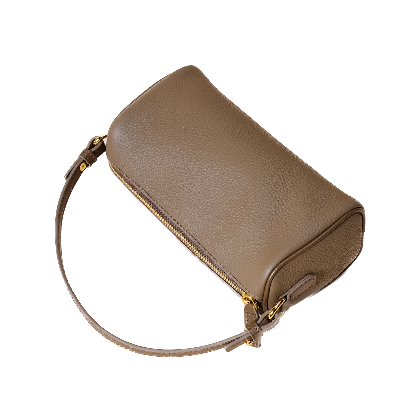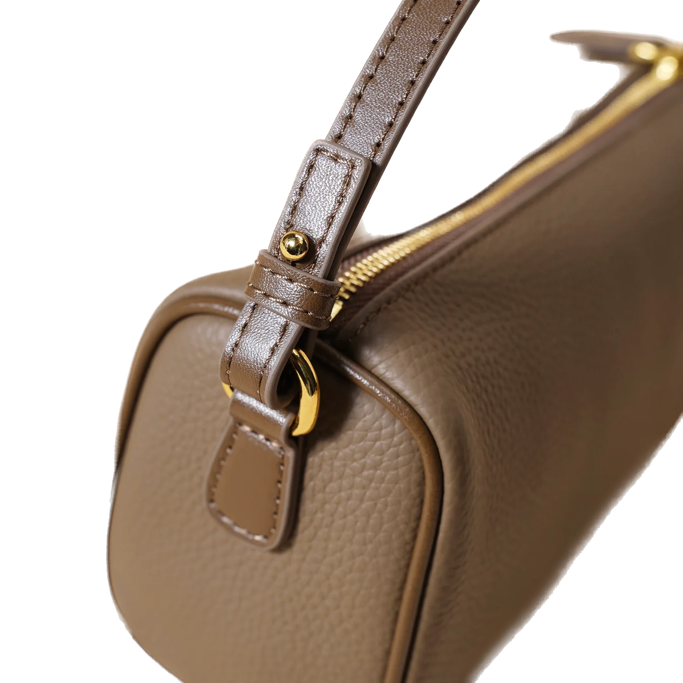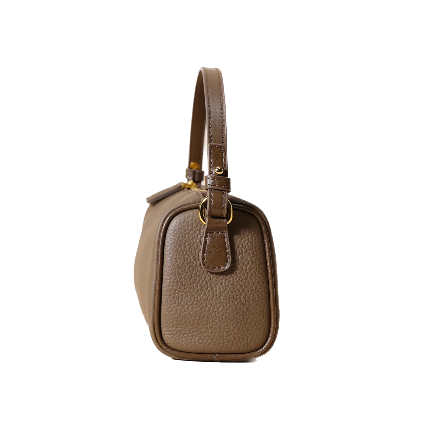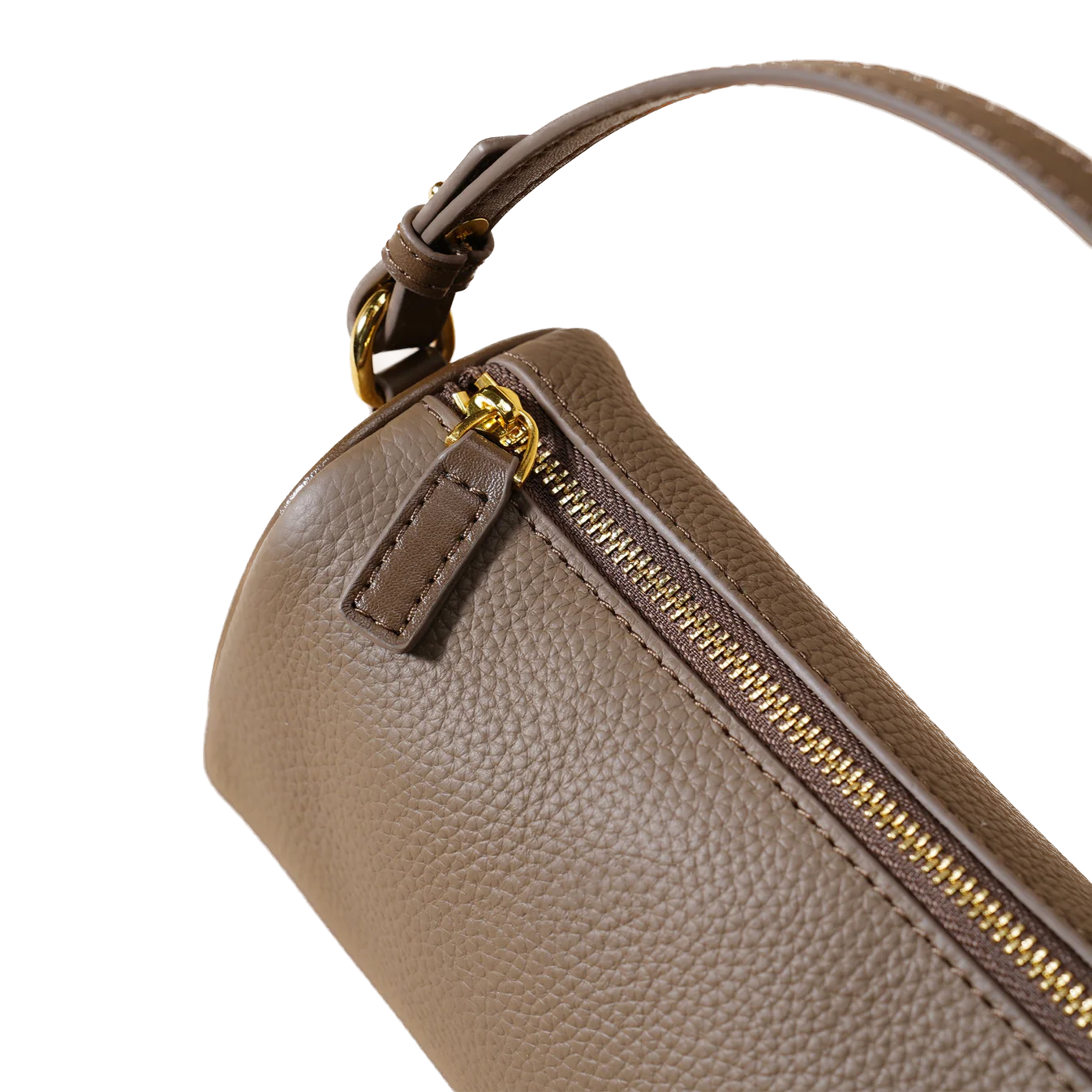 Premium birinci sınıf sığır derisinden üretilmiş, küçük boy silindirik formuyla sofistike bir görünüm sunar.