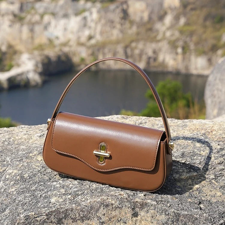Modern şehir estetiğiyle yorumlanan bu hakiki deri baguette çanta, minimalizmi zamansız zarafetle buluşturur. Kaliteli ikinci katman sığır derisinden üretilen tasarım, kusursuz üst dikişleri ve güvenli kilitli kapama detayı ile çağdaş sofistike bir duruş sergiler.