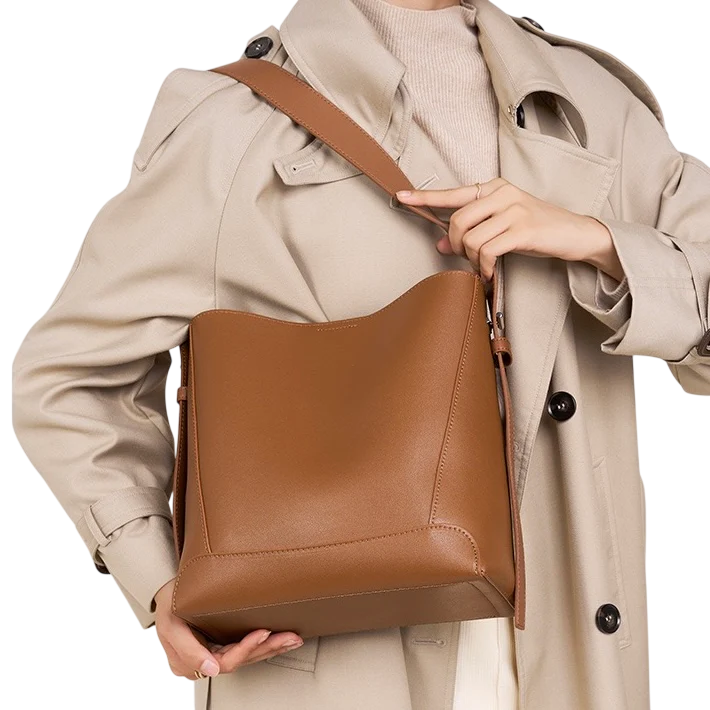 Vintage estetiğinden ilham alan Kadın Gerçek Deri Oversize Bucket Çanta, ikinci katman dana derisinden ustalıkla üretilerek hem dayanıklılık hem de sofistike bir dokunuş sunar.