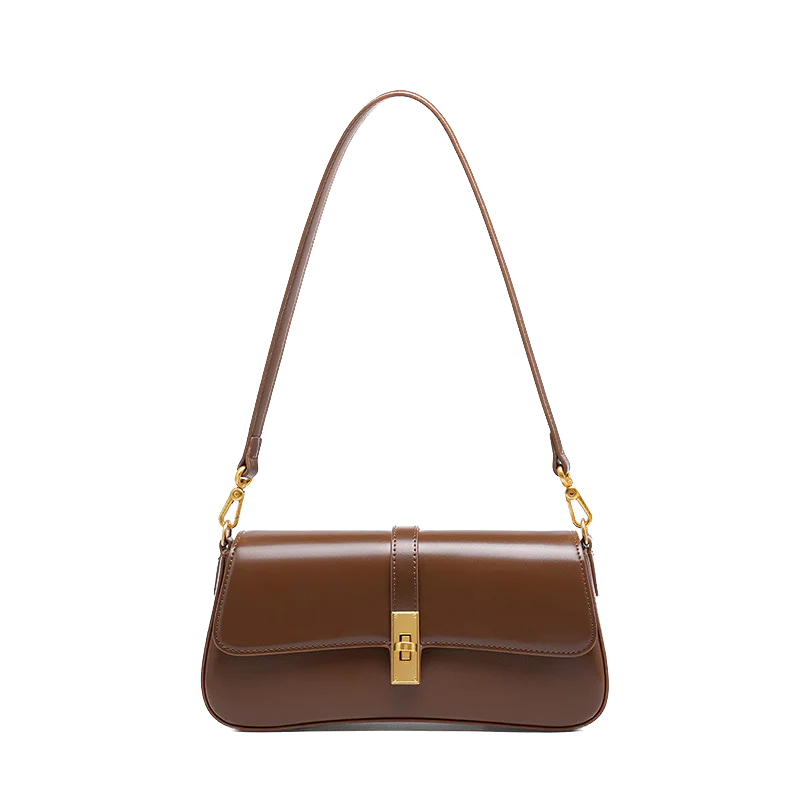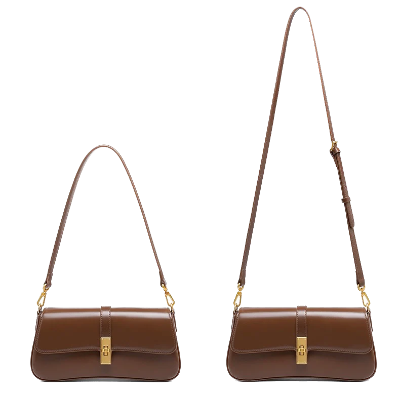 Vintage esintili bu kadın baguette çanta, şıklığınızı günlük yaşamda da korumanız için tasarlandı. Kompakt boyutu ve kilit tokalı tasarımıyla her gün kullanıma uygundur. Çanta, ikinci kat sığır derisinden üretilmiş olup dayanıklılık ve lüks bir his sunar. İç kısmında telefon için özel bir cep bulunurken, polyester astar şıklık katmaktadır. Çanta, kapaklı flap ile açılır ve kullanım kolaylığı için çift omuz askısına sahiptir. Günlük geziler ve kombinler için ideal, her kıyafeti tamamlayacak çok yönlü bir çantadır.
