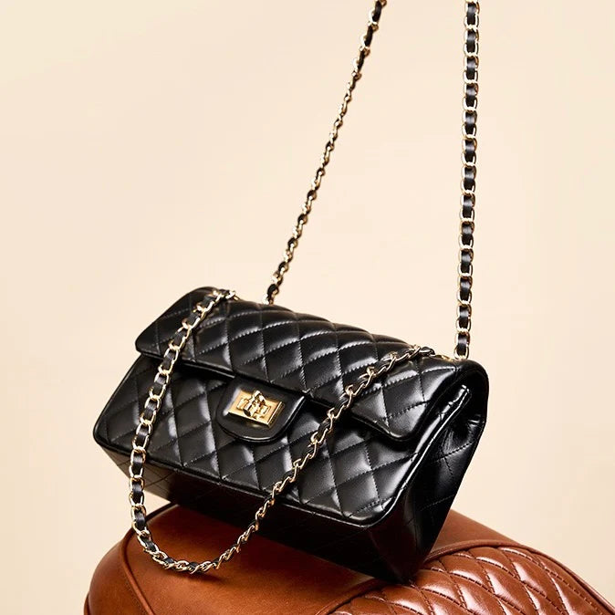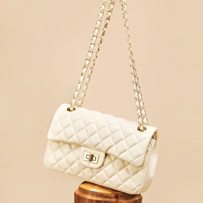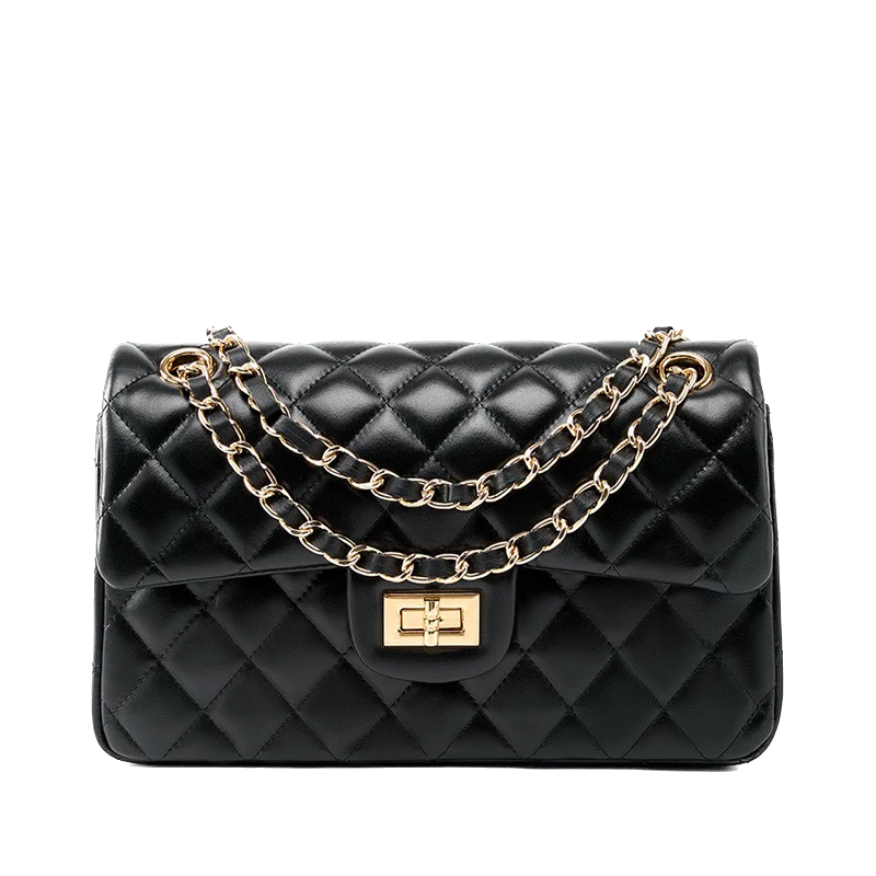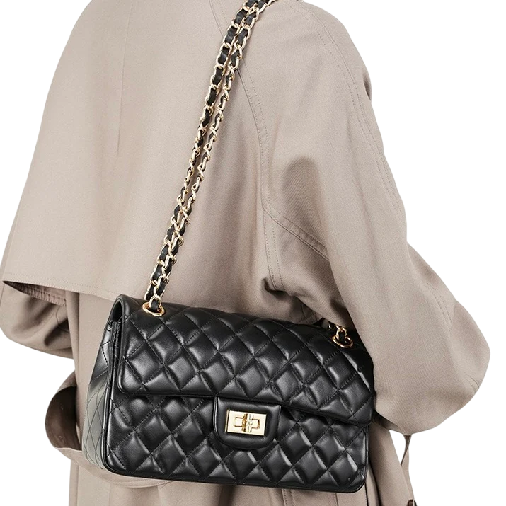 Retro estetiğinden ilham alan silüet, ikonik zincir detayları ve kusursuz kapitone dikiş yapısıyla zarif bir duruş sergiler.